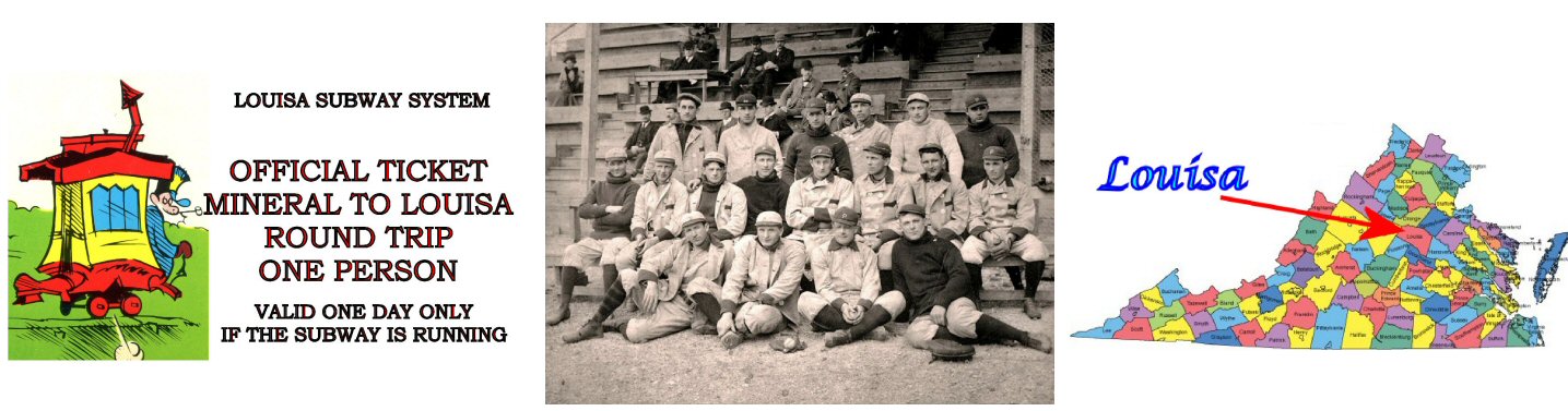 From "Outrageous Tales of Old Louisa" here is a reading about the first World Series game, in Louisa. Click the picture or skip the intro!